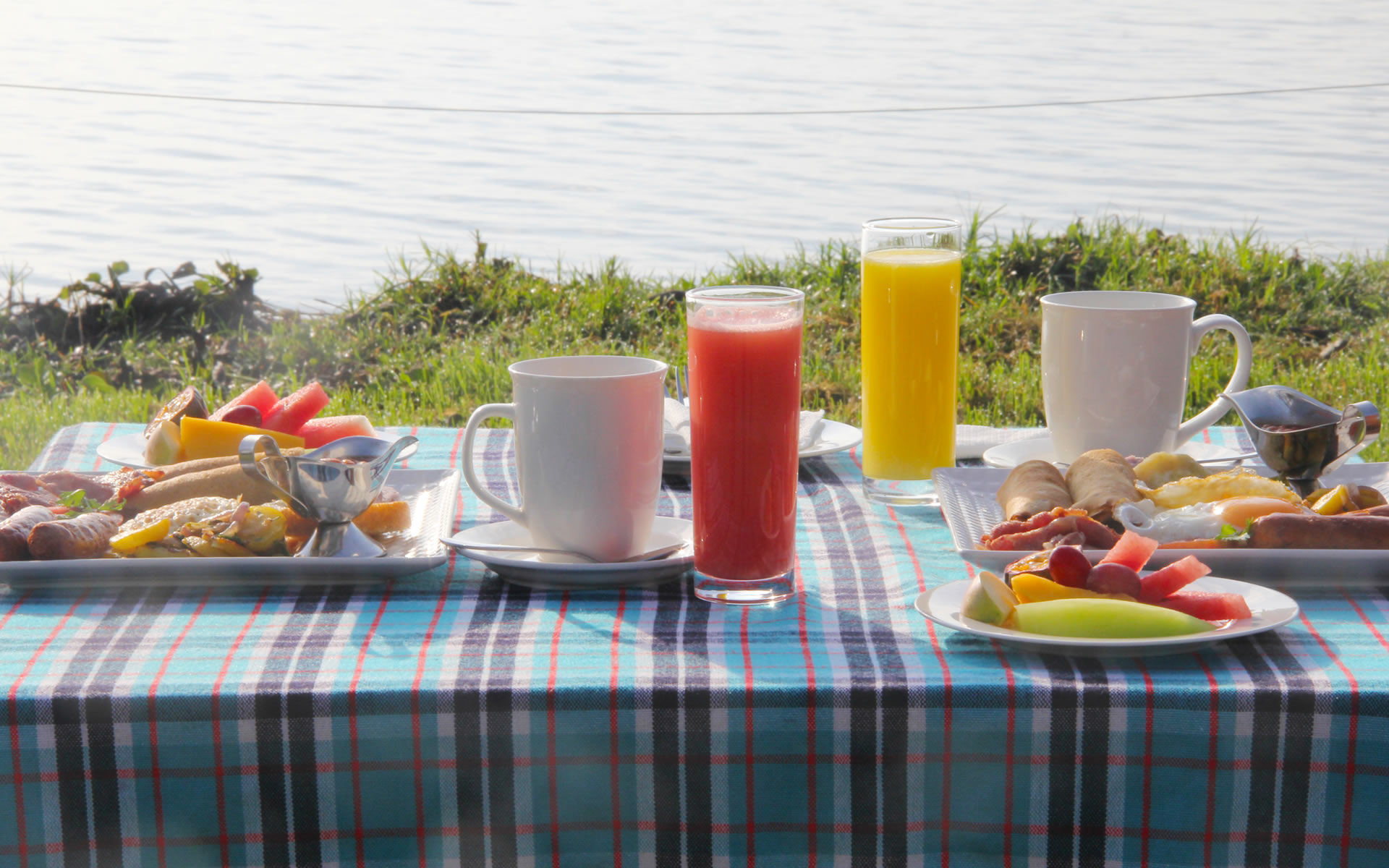 Our chefs prepare an individual buffet breakfast which changes daily, this is available from 7am to 10am in your choice of location, whether it be the dining room, lakefront, on your own balcony or in bed.